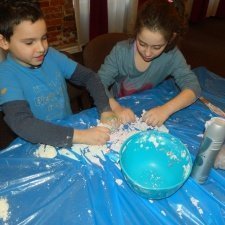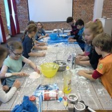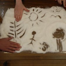 Uczestniczące w warsztatach dzieci miały możliwość zapoznania się z techniką animacji sypkiej. Scenografia i bohaterowie wymyślonych przez dzieci historii powstawały z soli, kaszy, mąki. Dzieci mogły również wykazać się przy tworzeniu sztucznego śniegu, z którego powstawały m.in. wymyślone przez dzieci stwory.
