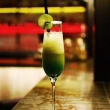 Łódź 1935, drink z historią w tle. Skomponowany ze świeżo wyciskanych mandarynek, świeżego ogórka i mięty z dodatkiem wódki, likieru miętowego i pomarańczowego curacao.