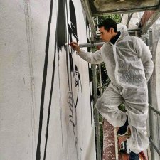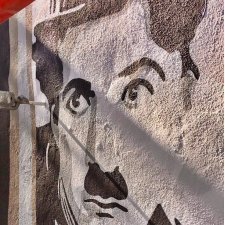Michael Picado połączył swój indywidualny styl z naszą historią i na ścianie naszej kamienicy powstał pierwszy filmowy mural w Łodzi! Przedstawia on Charliego Chaplina wychylającego się zza kurtyny.